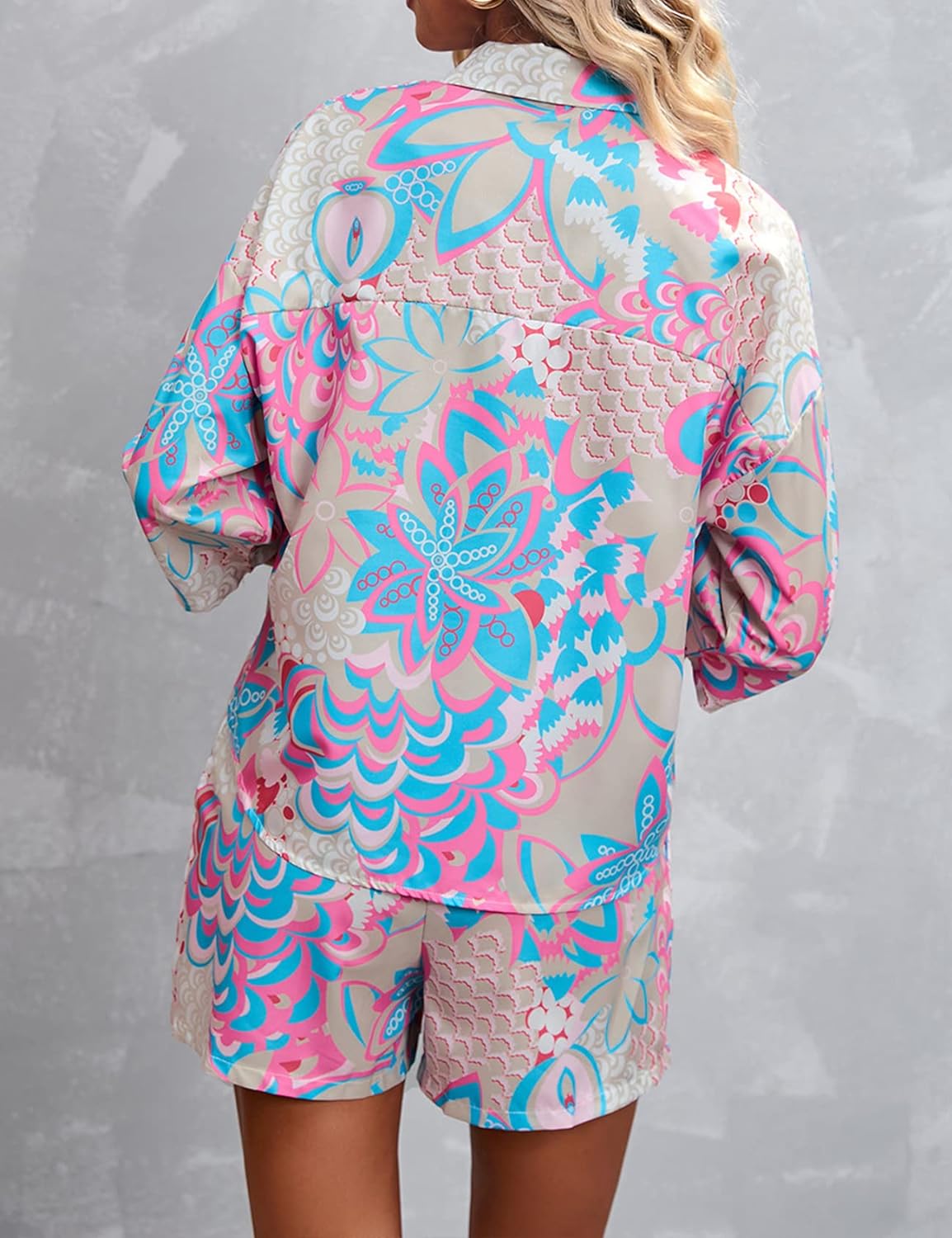 Hawaiian two pieces for women, tropical print pajamas sets, tropical 2 piece outfits for women, matching shorts and top set women